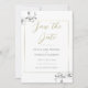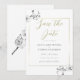 Kvistar av vita orkidéer, handritade med grafitpenna, dekorerar detta enkla men sofistikerade, eleganta men chic bröllopsdatum som har en delikat guldram. Hints av guld i färgen på skrivningen ger detta en festlig men dämpad färggladhet.