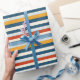 Vår klassiska marinblå, röda och gult stripe mönster gör perfekten papper för alla tillfälle!