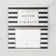 Klassisk randig bröllopsplats | Falsk guldfolie platskort med en klassisk svart-vit randig bakgrund. Dessa eleganta platskort har en elegant falsk guldfolierad ram runt dina gästuppgifter och på baksidan dina namn och speciella datum i chic typografi. Designad av Thisisnotme