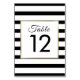 Klassiskt randigt bröllopsbordnummer med falskt guldbladsram och en klassisk svart-vit randig bakgrund. Dessa eleganta bröllopsbordnummer har en elegant falsk guldbladsram runt ditt bordnummer i chic typografi. Designad av Thisisnotme©