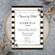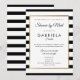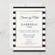 Med en klassisk svart-vit randig bakgrund har denna eleganta inbjudan till bröllopsfest per post på distans en elegant falsk guld-folie-kant som ramar in dina detaljer för bröllopsfesten i chic typografi. Designad av Thisisnotme