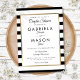 Med en klassisk svart-vit randig bakgrund har denna eleganta bröllopsinbjudan för par en falsk guldprägling kant som inramar era detaljer för par-duken i modern chic typografi. Designad av Thisisnotme©