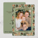 Fira säsongen med detta vintage-inspirerade julkort med en festlig kant av järnek, julgransprydnader och inslagna presenter i en varm, nostalgisk färgpalett. Den eleganta ramen framhäver ditt personliga foto, medan toppen lyder “God Jul” och botten visar ditt familjenamn och år. Perfekt för att skicka uppriktiga julhälsningar med en touch av tidlös stil.