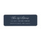 Elegantens returadressetikett innehåller ditt namn i en vit calligraphy-skriptbokstav med adress under i klassisk serif, på en nedsänkt marin blå bakgrund. Designad att samordna med vårt kustostron bröllop och evenemangsinsamling.