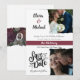 Eleganta blommiga röda, rubin, korall, burgunder och vinröda tema-inbjudningar, Ladda upp dina foton. Skickar dig för att spara datumkort med denna eleganta falska typografi på en vit och svart minimalistisk bakgrund med 2-foto grid collage, Denna högkvalitativa och moderna design är enkel att anpassa för att matcha din bröllops- eller förlovelseceremoni färger, stilar och tema, Designen har också en lättanvänd typografi layout