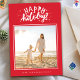 Lycklig Helgdag Lettering Red önskemål och önskar dina kära i stil. Ditt foto på baksidan eller den aktuella baksidan av mönster. Ditt foto på framsidan.