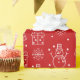 Den här roligten är det pappert med julomslutning i en novelty av snögubbar, snöflingor, presenter och skidhattar mot en klassisk röd bakgrund.