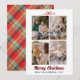 Fira säsongen med det här festliga kortet som visar en levande röd tartanrutig baksida och handskriven "God Jul". Personalisera det enkelt med fyra av dina favoritfamiljefoton och ditt anpassade namn.