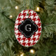 Klassisk röd vit houndstooth med monogram julgransprydnad keramik