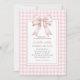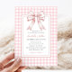 Klassisk Rosa Bow Gingham Girl Baby Shower-inbjudan