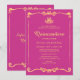 Classic Quinceañera-inbjudan. Med skriptteckensnitt, tiara och rosa magenta och guld färg design.