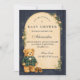 En charmig förberedande babyfest med en söt teddybjörn iklädd en klassisk grön rutig jacka och fluga. Ovanför björnen visar en delikat tvättlina små barnkläder och skor, vilket skapar en nostalgisk bilderboksinspirerad barnkammarscen. Den djupt marinblå bakgrunden och det subtila tartanmönstrade ramverket ger en förfinad, vintageinspirerad touch som känns både elegant och lekfull. Perfekt för en stilfull babyfest med en klassisk förberedd estetik.