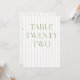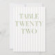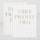 Detta eleganta bordskort har en mjuk beigefärgad randig bakgrund med förfinad, ljusgrön serif-typografi och subtila skrivstilaccentuer. Designad för trädgårdsbröllop, förfinade mottagningar och tidlösa utomhusfiranden.