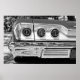 Monokroma högupplöst fotografi av den lämnat ljuset svan av en amerikansk klassisk bil.