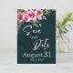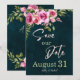Klassisk smaragdgrön, burgunder och rosafärgade rosor rustik mörk sagostämning bröllopsinbjudan Save the Date-kort