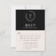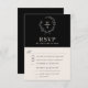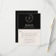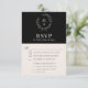Den här designen är ett smakfullt och klassiskt val i svarskorten i bröllop och ger en enkel elegans i textlayouten och det klassiska stil. En enkel öppen lagerkrans av sketsade löv omger den monogramstarten av bruden och trippen. I den enkla eleganten finns målmarkeringar som du kan anpassa med önskade poster. Svarskortet är ett mångsidigt val för bröllop när som helst under året och för vilken plats som helst i bröllop, oavsett om det är en högtidlig ceremoni i religiösan eller en sekulär affär vid en bankethall, vinerier, museer, restauranger, privat klubb eller ett bröllop utanför naturen. Det finns i en mängd populära färg (visas här i klassiskt svart och termopapper) samt i många olika pappra typer och vikter.