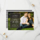Elegant manus och formell text gör denna svart-vit-randiga spara-datum-inbjudan perfekt för alla par som har ett traditionellt bröllop. Designen innehåller ett foto.