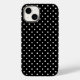 Den här telefonväskan har en klassisk svart och vit polka-punkt mönster med vita punkter på en svart bakgrund.