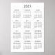 Klassisk svart-vit 2025 Enkel Grundläggande Kalend Poster