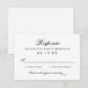 Färdigställ din svit med detta bröllops-svarskort med elegant ”Svar”-typografi och en ren svart-vit layout. Inkluderar utrymme för gästens namn, närvaroval och en praktisk rad för gästantal. Minimalistiskt, tidlöst och perfekt för formella, traditionella eller moderna klassiska bröllop.