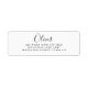 Denna moderna, eleganta klassiska svarta och vita returadressetikett har två typer av typsnitt, handskriven skriptstil för namnet, signatur och ett fet stil för adressen.