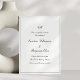 Denna bröllopsinbjudan har elegant skriptbokstäver med en tidlös svart-vit layout och klassiska monograminitialer högst upp. Den enkla dubbla ramen och den raffinerade typografin skapar en formell look som är perfekt för traditionella ceremonier och svarta bandet-mottagningar. Idealisk för par som planerar ett elegant kvällsbröllop med middag och dans. Ett tidlöst val för klassisk brölloppskorrespondens.