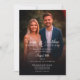 Designen visar upp en modern och minimalistisk look med en svart-vit färgpalett. Fokuspunkten är ditt foto med ett elegant svart överlägg, Den vackra skriftskriftstypografin visar namnen på paret och bröllopsinformationen.