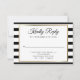 Ett stilfullt RSVP-kort med en elegant falsk guldprägling kant som ramar in dina evenemangsuppgifter i chic typografi på en klassisk svart-vit randig bakgrund. Personifiera med dina speciella evenemangsuppgifter. Designad av Thisisnotme©