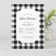 Klassisk, tidlös svart-vit herdecheck-födelsedagsinbjudan. Anpassningsbara typsnittsstilar och layout, med en enkel mönstrad bakgrund med ett rent, geometriskt rutigt mönster. Perfekt för unisex födelsedagsinbjudningar, baby boy-födelsedagsinbjudningar och preppy-födelsedagsinbjudningar.