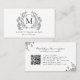 Modern Black White Blommigt Vapensköld Monogram QR-kodAffärskort
