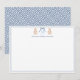 Skicka ett sött meddelande med dessa charmiga barnkammartack-kort eller vykort, med en handmålad monogramkrona med rosett, flankerad på vardera sidan av en handmålad teddybjörn. Kortet har en blå och vit färgskala. Alla akvarellelement målades för hand av mig innan de skannades och kombinerades/redigerades digitalt. På baksidan finns ett mörkblått och vitt grekiskt nyckeltryck (du kan ändra den mörkblå färgen till valfri annan färg du vill i designverktyget).