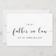 Ett enkelt och minimalistiskt presentkort för skriva är ett personligt och hjärtligt budskap till far på din bröllopsdag. Fullständigt anpassade med färg (text och bakgrund). Du kan lägga till ett meddelande på baksidan eller lämna det tomt om du föredrar att skriva ditt meddelande senare.