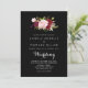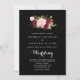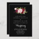 Den här klassiska kallelsen med tropisk svart front och bak-bröllop är perfekt för ett orustiskt bröllop. Den konstnärliga utformningen av Border marsala har vattenfärg, grönt, rosa, burgundy och ro, som har en grön, nyttigt placerad blombukett i en strålande och strålande blombukett. Spara papper genom att på baksidan av inbjudan ange mer information i stället för på ett separat visitkort.