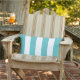 En klassisk lumbalpåse med ljusa turkosa och vita breda cabana-ränder. Det svala vertikala randmönstret ger luftig, tropisk energi till uteplatser, poolområden eller verandamöbler. En uppfriskande accent för utomhusmiljöer med strandhus-charm och ö-inspirerad färg.