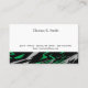Detta visitkort visas i en grundläggande klassisk design i vitt med ett abstrakt konsttryck i svart och grön flerfärg.