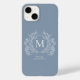 Klassisk Dusty Blue Blommigt Vapensköld Monogram Fodral-Mate iphone case