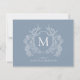 Klassiskt Vapensköld för Dusty Blue-Blommigt, Monogram-anteckningskort