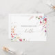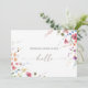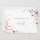 Meddela fantastiska nyheter till vänner, familj och nära och kära om ditt ovärderliga mirakels efterlängtade ankomst med det här klassiska graviditetskortet med vilda och färggranna blommor. Designen visar gula, lila och vita vilda blommor med lövverk sammanställda i vackra buketter. En elegant kalligrafiskrift som lyder "hej" i taupe, ett ultraljudsfoto, ett rent vitt utrymme för att avslöja barnets namn och beräknat födelsedatum ger en tidlös och förtrollande estetik.