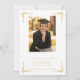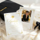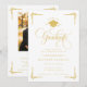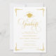 Fira en anmärkningsvärd akademisk milstolpe med denna klassiska vita och gyllene examensinbjudan, designad med tidlös elegans och formell sofistikation. Med utsmyckad gyllene skrivstilstypografi, dekorativa hörnaccents och ett examensmössa emblem gör denna inbjudan ett slående intryck för en examen från gymnasiet eller universitetet.