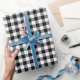 Vita och svarta bufflar la mönster som täckte pappra lakan. För den här julhelgen har vi lagt till en mindre storlek för det här klassiska mönster. Du kan anpassa dig för att välja en egen bakgrund färg. Du kan också överföra den sömlösa svarta gingham-mönstret till andra presenter.