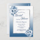 På framsidan: En klassisk blå och vit övertoningsfigur med faux silver ram. Dekorerad med vattenfärgade blommor, blommigtar i blå nyanser. Mallar för bridens uppgifter om namn och party. Namn och texten: Möhippan är skriven med ett handskrivet stil-skript, blått färgad brev. Bakåt: klassisk blå övertoning. Tips! Om du inte vill att det ska se ut som ett vykort klickar du på anpassa, går till baksidan och tar bort delaren och lägger till frimärke.