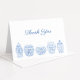 Handmålad akvarell blå och vit ingefärskrukor med "Tack" i en kalligrafisk teckensnitt.