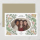 Denna design, Classic Christmas Bells & Foliage Frame, är ett tidlöst julkort som blandar elegans med värme. Med handillustrerad grönska, röda bär, gyllene klockor och ömtåliga ornament, framhäver ramen vackert ditt familjefoto i en oval mittdel. Den subtila paletten av grönt, rött och guld fångar den festliga känslan samtidigt som designen hålls sofistikerad och modern.