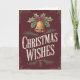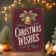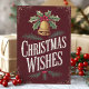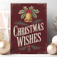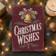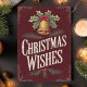 Skicka tidlösa julhälsningar med det här vackert illustrerade julkortet "Christmas Wishes". Med en vintageinspirerad guldbjällra prydd med järnek och bär mot en rik burgunderfärgad bakgrund utstrålar kortet en nostalgisk julstämning. De handritade bokstäverna och den eleganta designen gör det perfekt för att dela uppriktiga julönskningar med nära och kära. Idealiskt för alla som uppskattar traditionell och klassisk julestil, kommer detta kort att tillföra en varm och festlig touch till deras högtid.