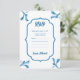 Klassiska minimalistiska blåa kakelbladornament spara datumet