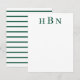 Tidlös och elegant anpassad platt anteckningskortdesign med djupgröna bokstäver som kan anpassas med förnamn, efternamn och mellannamn i klassisk serifstil. Plats för din handskrivna anteckning finns och baksidan av kortet har ett stilig randig mönster i horisontella gröna och vita ränder.
