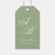 Klassiska Sagegröna & Vita Monogramm Skript Bröllo Presentetikett