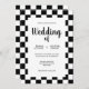 En annan original inbjudan till bröllop med en ljus ram av svart och vitt rutigt kakel på vit bakgrund. En rolig variation av ett klassiskt och tidlöst tema. En sofistikerad design för alla typer av bröllop när som helst under året. Du kan ändra namn och datum i anpassningsmenyn.