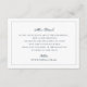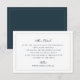 Ett tidlöst bröllopsföljekort med en krispig vit framsida med elegant marinblå script- och serif-typografi, en raffinerad ram och en marinblå baksida för en polerad och formell finish. Detta informationskort blandar klassisk stil med en stark monokrom look.