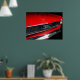Den här poster innehåller ett foto av en klassisk röd mustang.